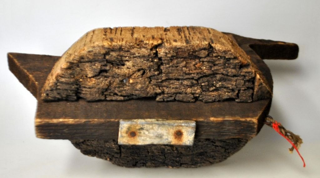 Lokkeand i træ og kork, ca. 1920. Danmark. Med bly som vægt. L.: 36,5 cm. H.: 22,5 cm.