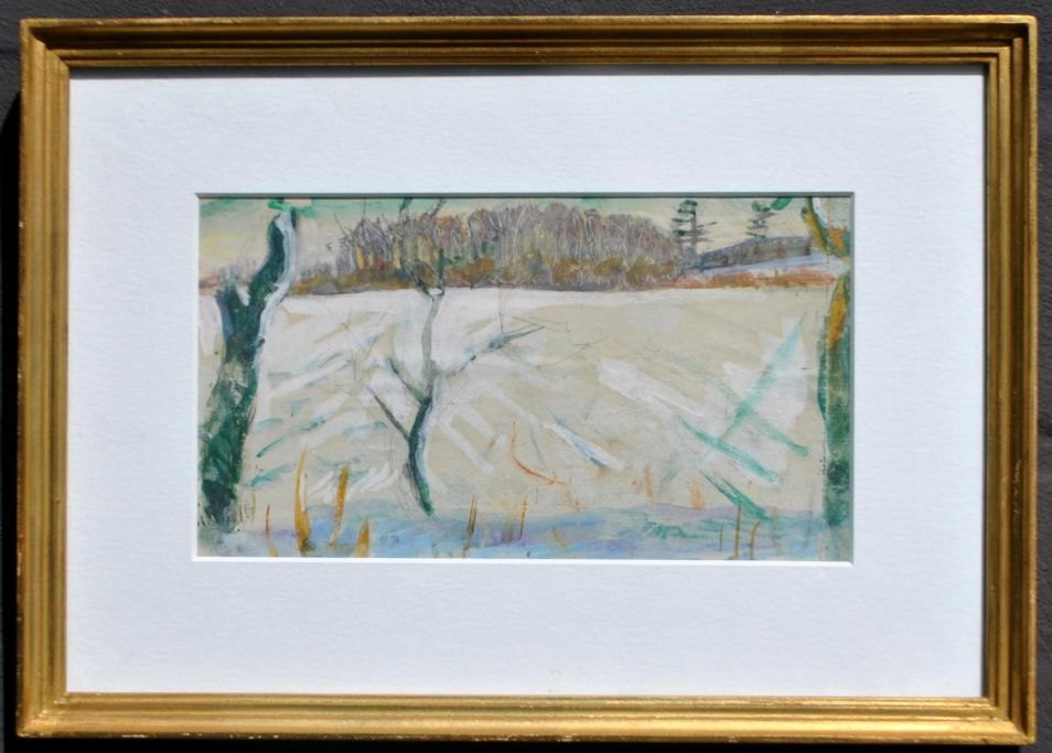 Dette værk er intet mindre end et dansk kunsthistorisk og historisk klenodie. Karl Bovin havde i 1965 medbragt dette vinterlandskab til Bahrain, hvor han deltog i P. V. Glob's udgravninger i Qala'at al Bahrain. Værket blev givet til den unge historie- og arkæologstuderende Else Rosdahl på hendes fødselsdag den 26. febrauar 1965, da hun deltog udgravningerne. De øvrige deltagere af ekspeditionen havde splejset sammen for at købe værket af Bovin og give det som gave.