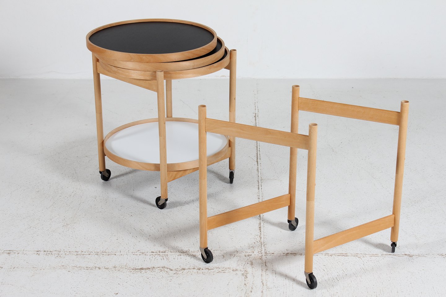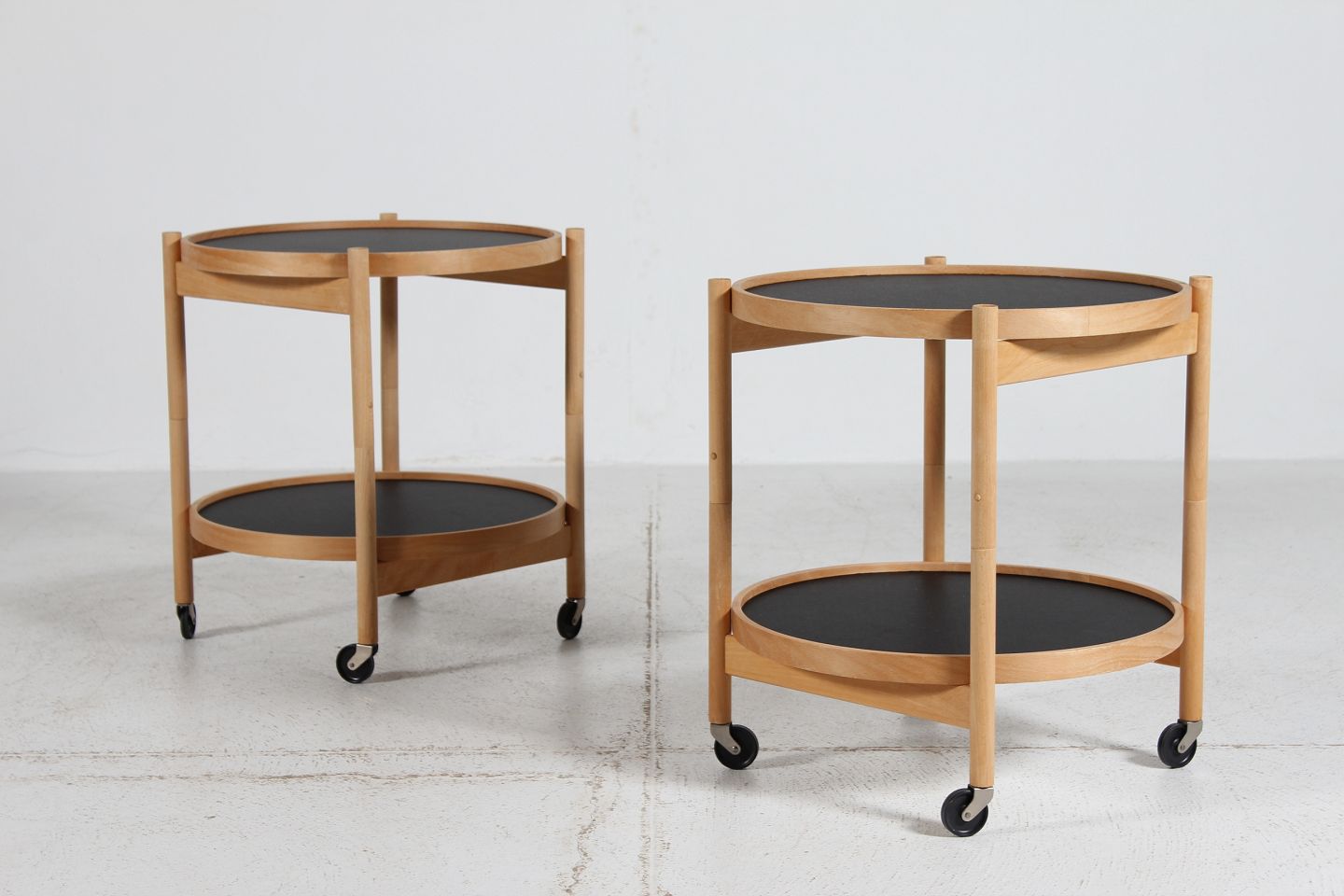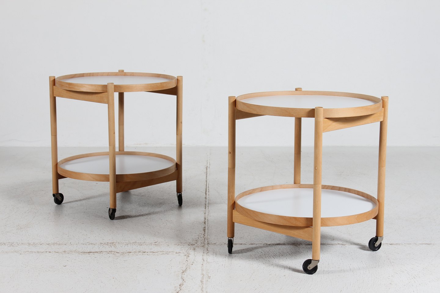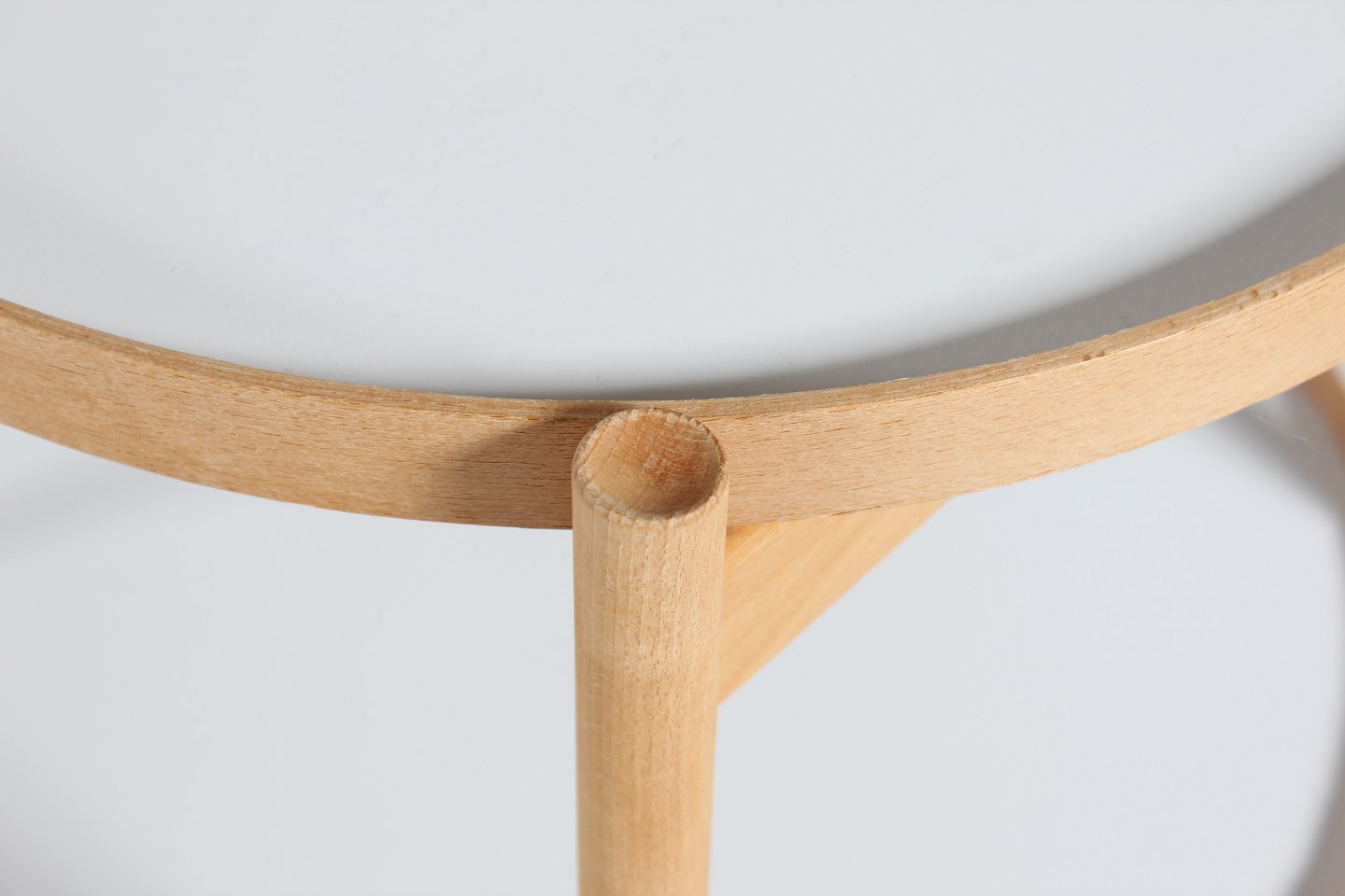 2 runde rulleborde af bøgetræ tegnet i 1963 med