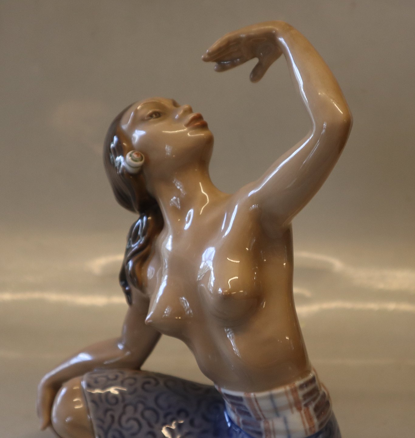 Dahl Jensen 1352 Orientalsk danserinde 21 cm (DJ). Mærket med kongelig krone og DJ Copenhagen i hel og fin stand.