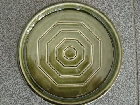 Lys olivengrøn bordfad med reliefdekoration 1966.