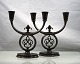 Et sæt lysestager af messing med sort metal, i flot stand og i jugendstil ...