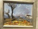 Maleri af William Hansen - Nøgne træer i landskab - "Dampende Mødding" 1983.