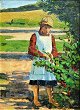 Sørensen, Eiler (1869 - 1953) Danmark: En ung kvinde ved en væv