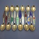 Danish Krone Silver Christmas spoons of gilt silver and enamel, set of 12