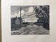 Litografi af Kai Seligmann - Mølle med græssende får.