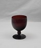 Holmegaard Likørglas dekoreret med sort hane og rød rand.