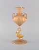Stor vase i lyserødt mundblæst kunstglas dekoreret med 24 karat bladguld. ...