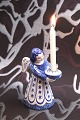 L. Hjorth ceramic angel with blue / white glaze holding a small candle. . .