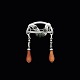 Georg Jensen. Broche i 826s sølv med agat og rav. 1907-14 stempler.