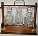 Tantalus af egetræ med tre karafler af krystal med propper. England. 19. ...