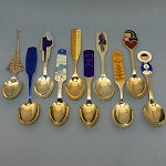Danish Krone Silver Christmas spoons of gilt silver and enamel, set of 12