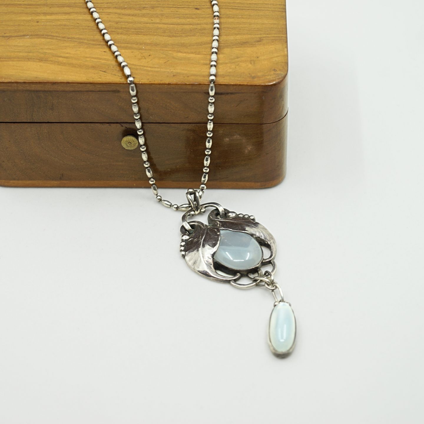 Evald Nielsen; Necklace in silver. Pendant with 2 moonstones.
