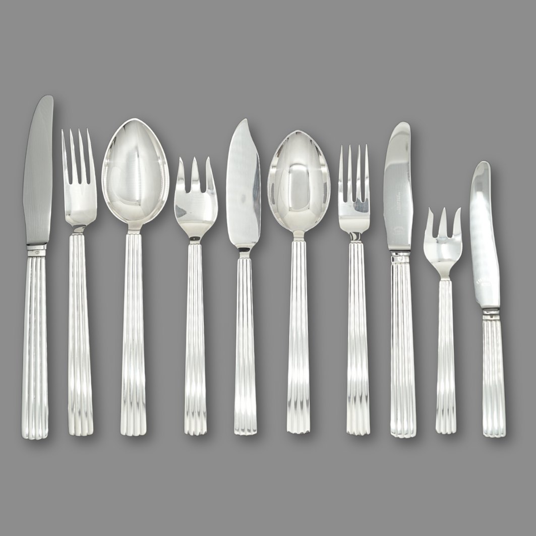 Georg Jensen, Sigvard Bernadotte; Barnadotte silver cutlery, complete for 6 persons, 71 pieces