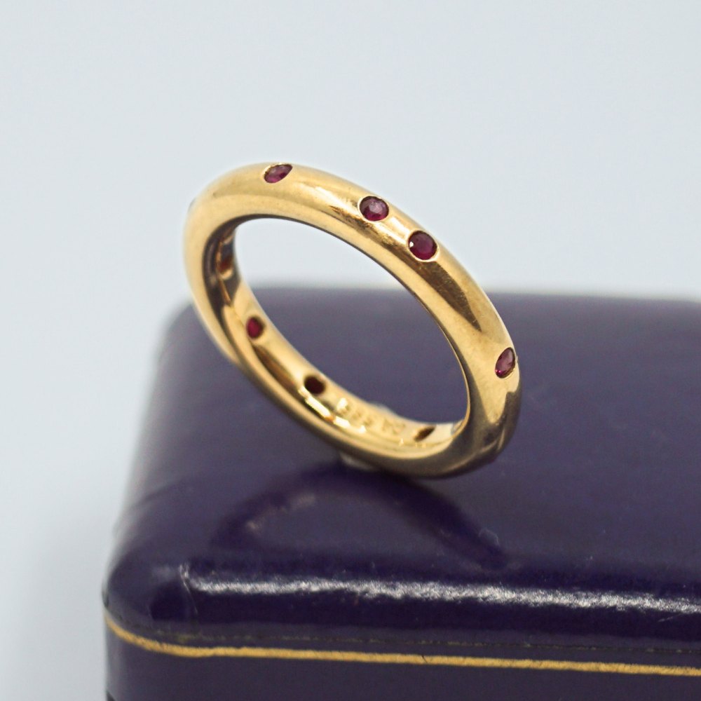 C. Antonsen; A ring in 14k gold set with rubies. Ring size 52.