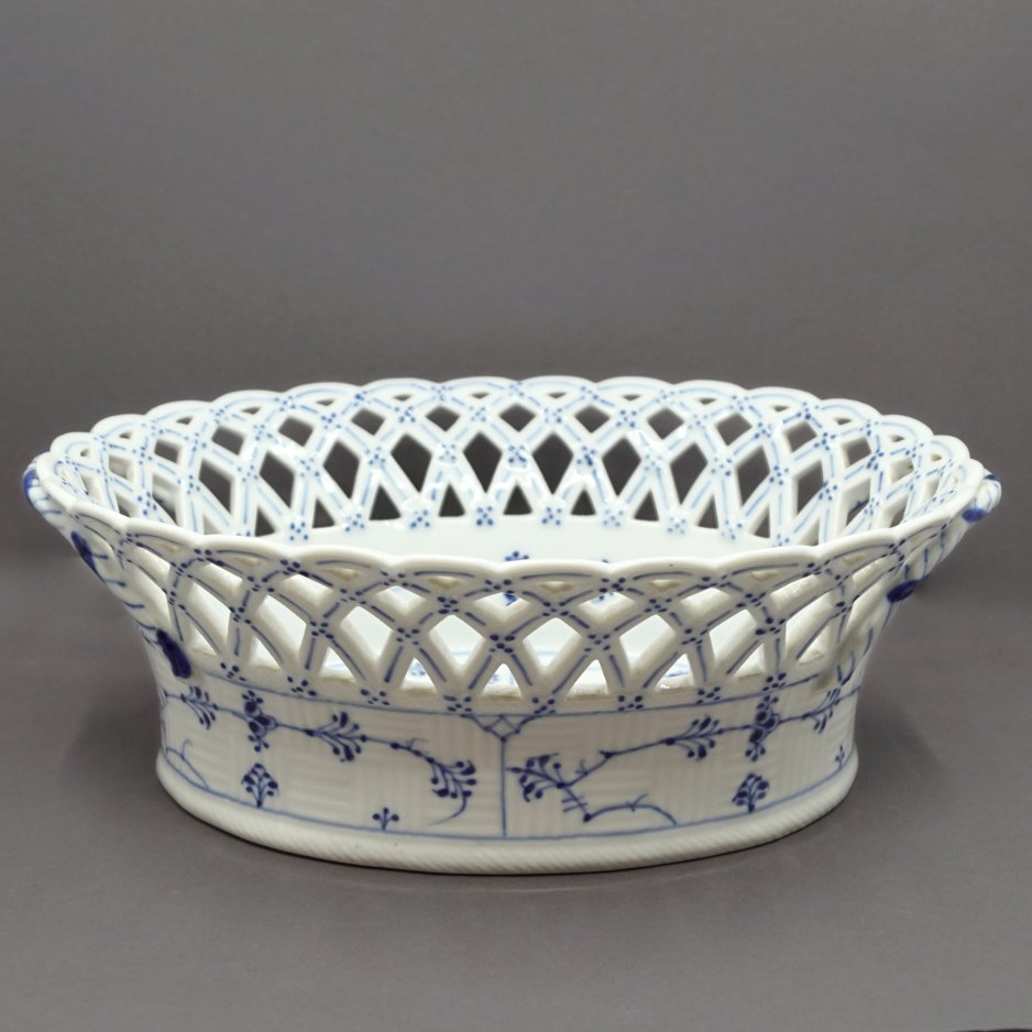 Royal Copenhagen, blue fluted full lace porcelain; An oval fruit basket