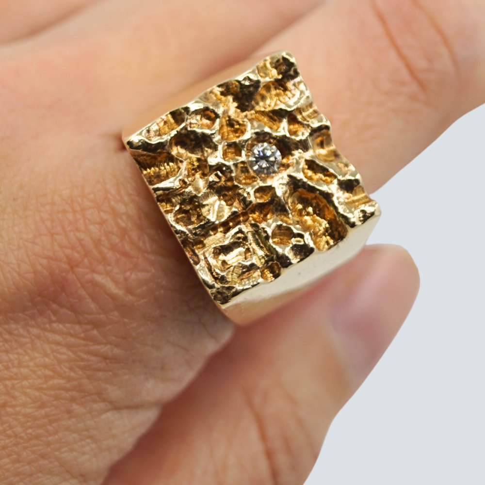 Large signet ring in 14k gold with diamond