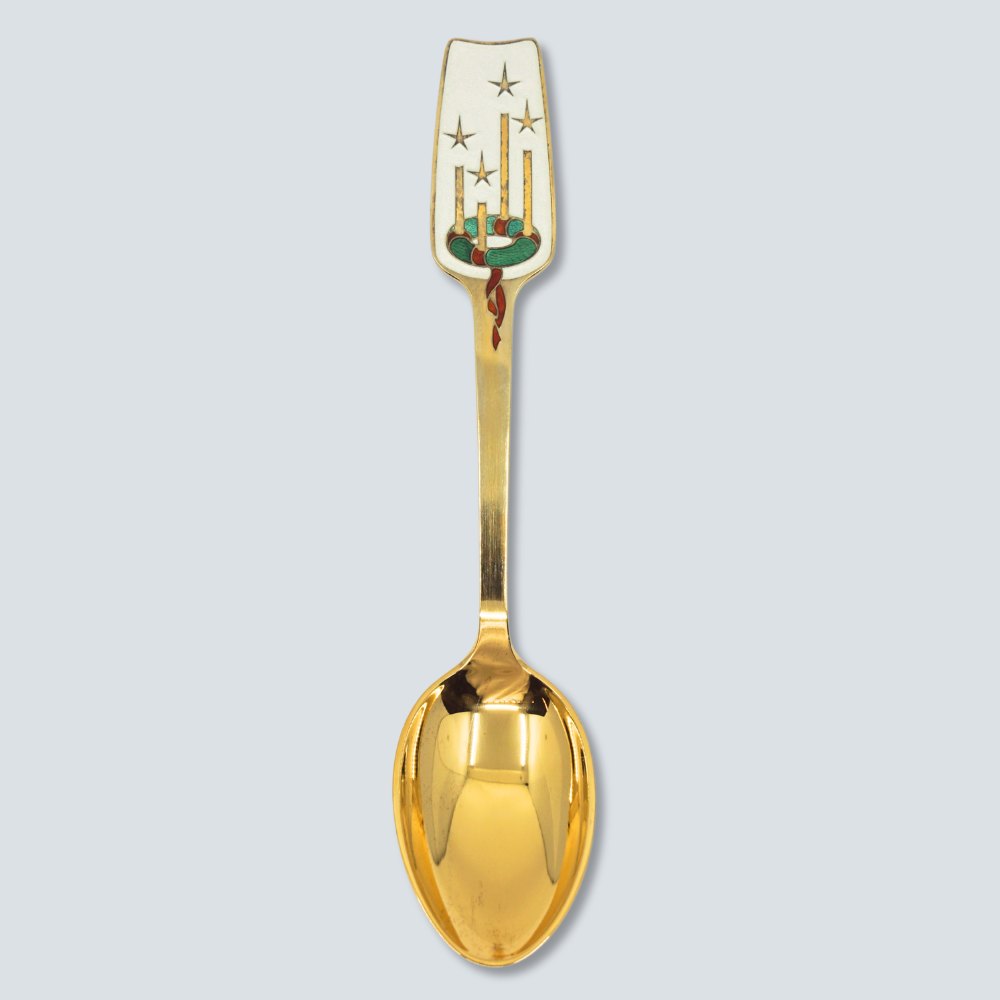 A. Michelsen juleskeer. Mogens Nilsson for A. Michelsen; Juleske 1949. Juleske af forgyldt sterling sølv med emalje. Design Mogens Nilsson.