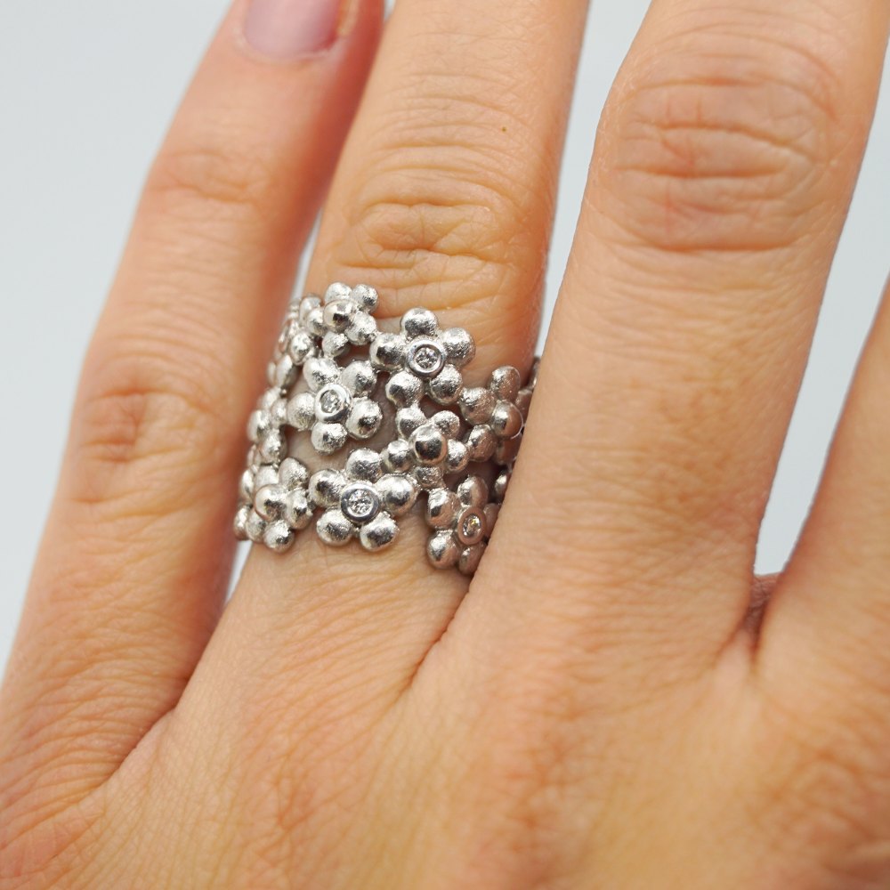 Ole Lynggaard; Hyldeblomst ring i 14 kt. hvidguld med diamanter