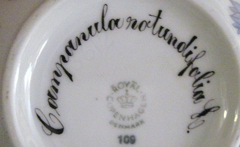 Kongelig Porcelæn Flora Danica Bouillon Kop 20/3612 or 109. Blomsten er: Companula rotundifolia L. Første sortering og i perfekt stand.