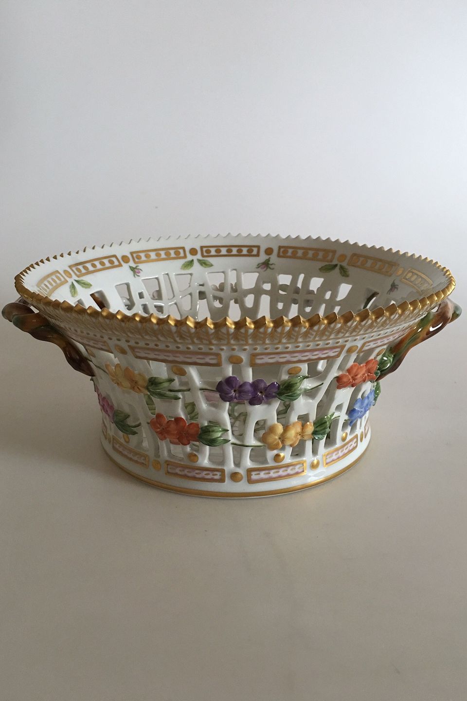 Royal Copenhagen Flora Danica Large Fruit Basket 20/3534 or 397. The flower is: Rosa tomentosa Sm. First quality and in perfect condition. Measures 21,5cm/8 1/2" in diameter.