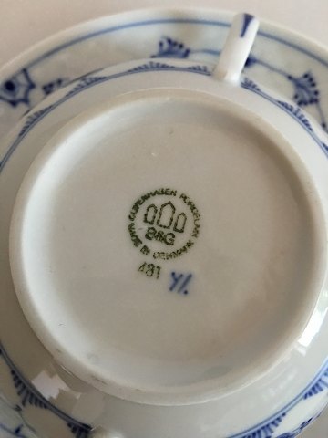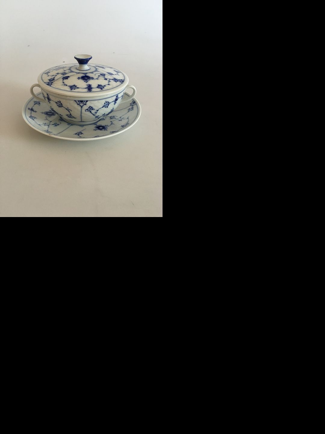 Bing & Grøndahl Blåmalet Musselmalet Bouillon Kop, underkop og låg No 481. I god stand.