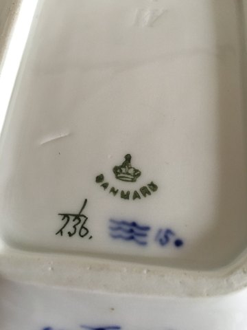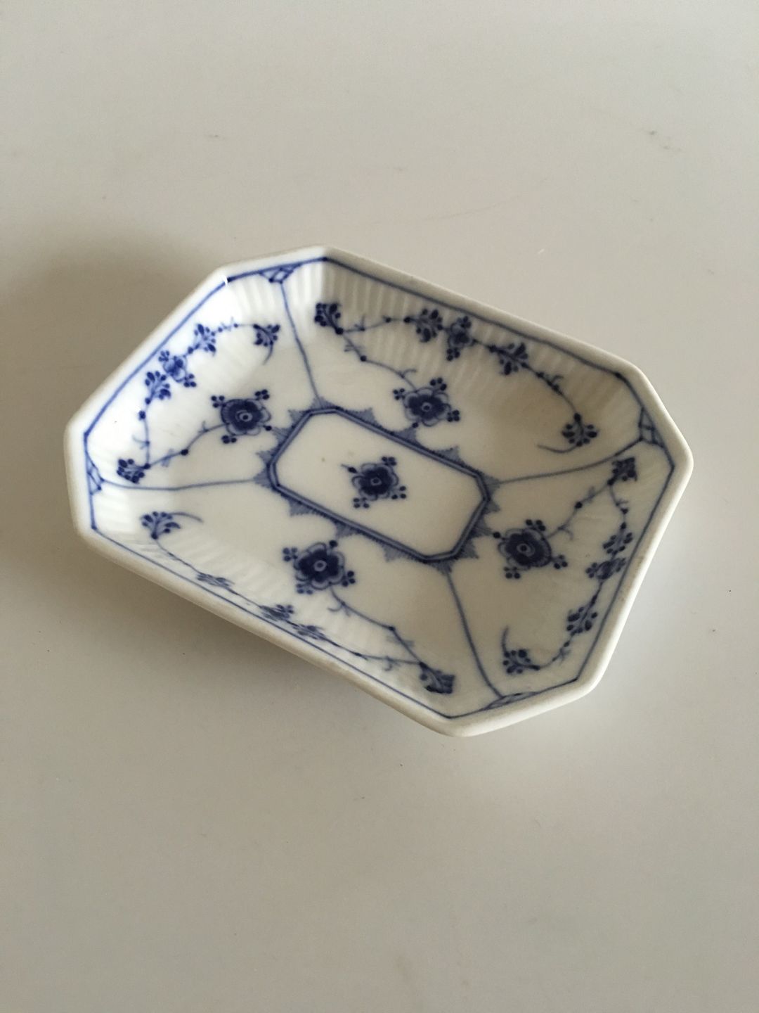Kgl. Porcelæn Musselmalet Riflet Firkantet Skål, Lille No 236. 13.5 cm x 11 cm