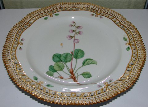 Kongelig Porcelæn Flora Danica gennembrudt Spisetallerken 20/3553 nyt nummer 637. Blomsten er: "Pyrola grandiflora Rad.". Måler 25cm, første sortering og i perfekt stand. Royal Copenhagen