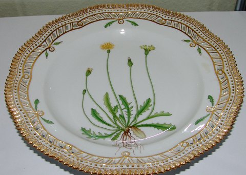 Kongelig Porcelæn Flora Danica gennembrudt Spisetallerken 20/3553 nyt nummer 637. Blomsten er: "Thrincia hirta Roth.". Måler 25cm, første sortering og i perfekt stand. Royal Copenhagen