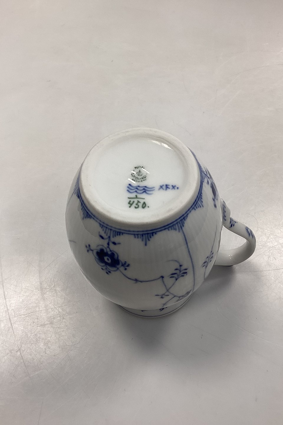 Royal Copenhagen Blue Fluted Plain Milk Pitcher No. 450. Measures 15.5 cm / 6.10 in. and is in good condition. 2nd Quality