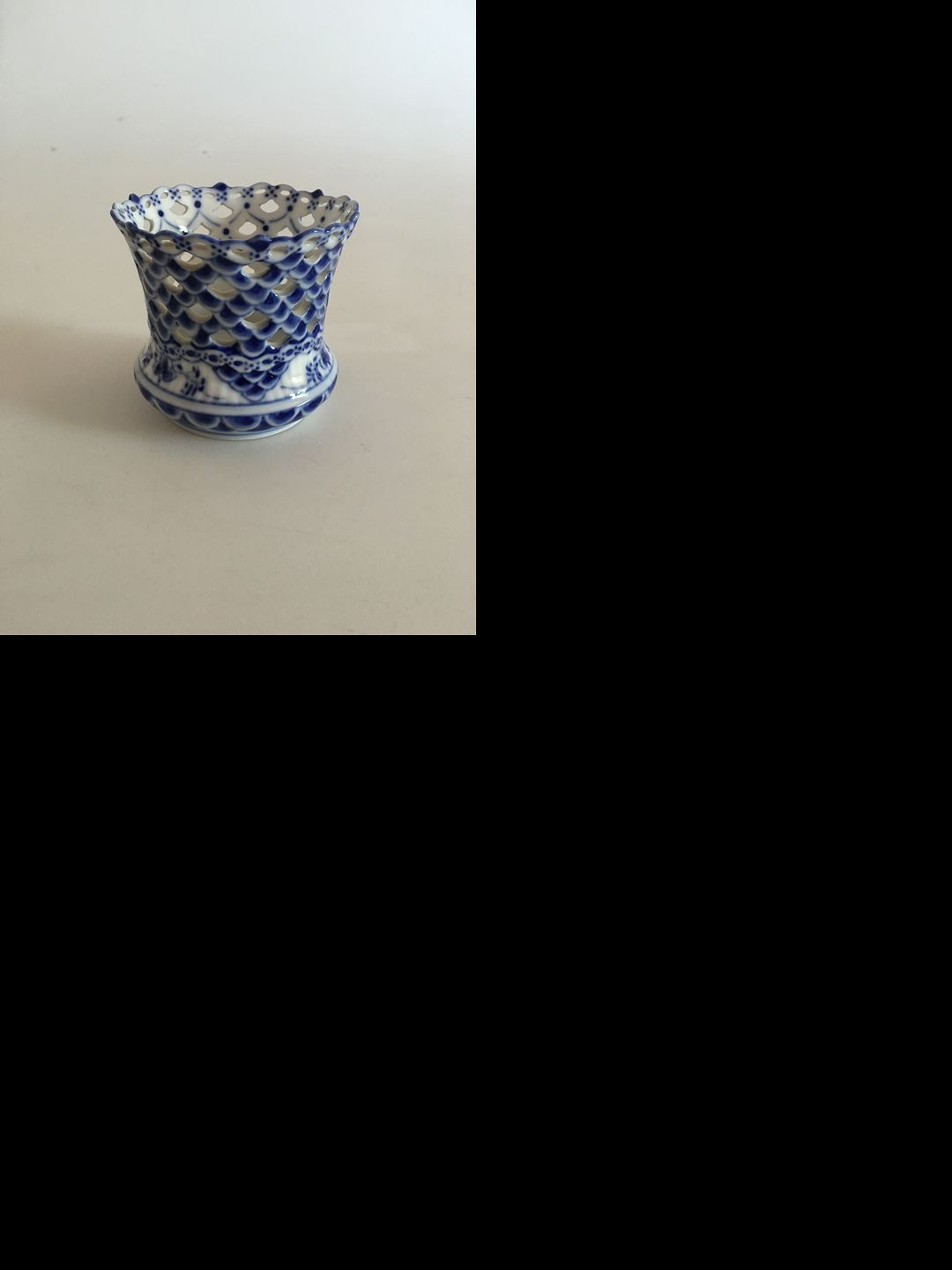 Royal Copenhagen Musselmalet Helblonde Lille Kop/Cigaretbæger No 1015. Måler 7,2 cm x 8 cm dia.