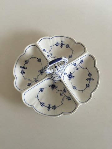 Royal Copenhagen Musselmalet Riflet Cabaretfad med Fire Skåle No 2130. 29 cm. Mærket som anden sortering, da der er små sorter kulrester.