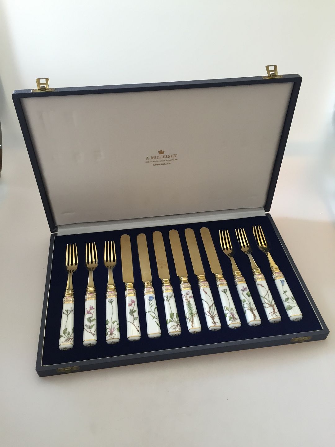 Royal Copenhagen Flora Danica Dessert Flatware set for 6 persons Anton Michelsen gilded silver. I have had a lot of Flora Danica flatware over the years. But it is the first time I have seen a presentation box.