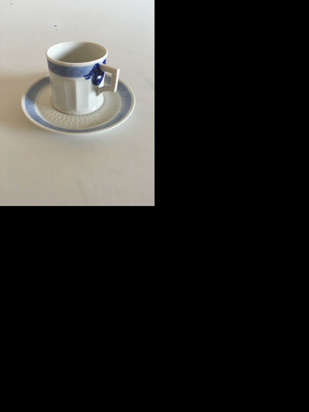 Royal Copenhagen Blå Vifte Espresso Kop og Underkop No 11548. Kop måler 5.6 x 6 cm