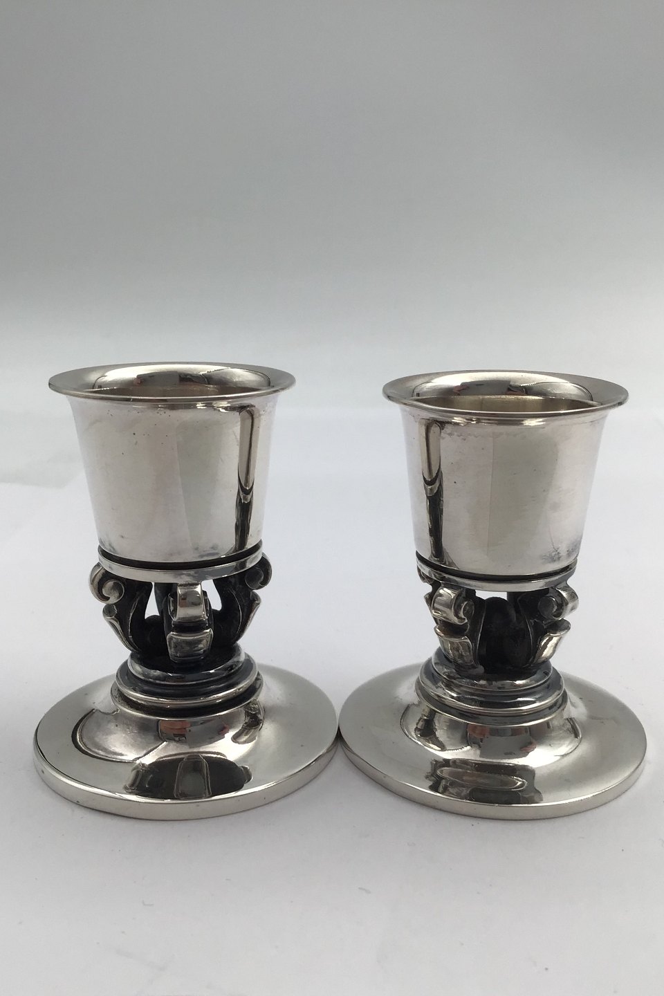 Georg Jensen Sterling Silver Acorn Candlesticks No 741. Measures 5,3cm and is in good condition.