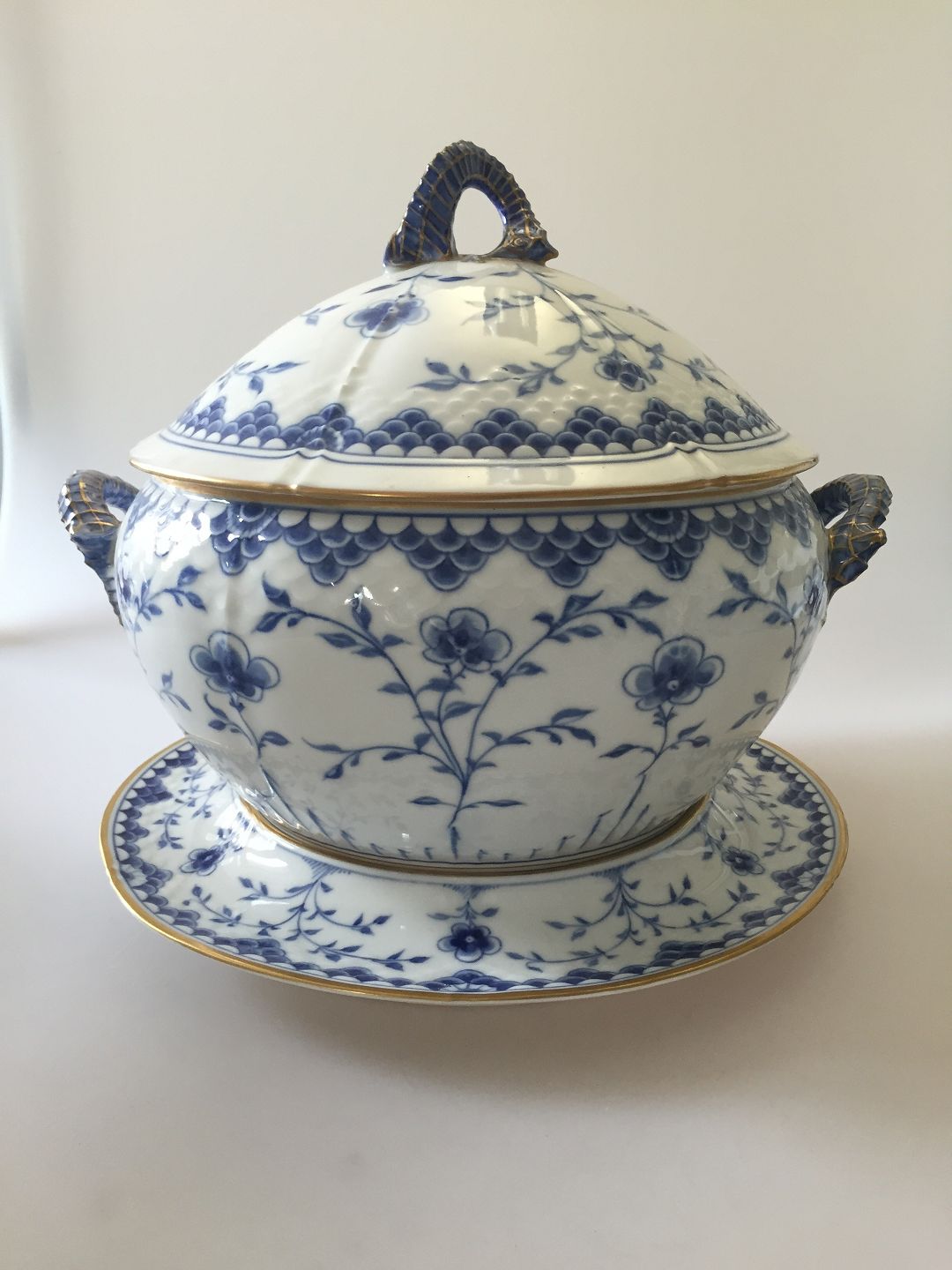 Bing & Grøndahl Dickens Sommerfugl med Guldkant Terrin og underfad No 3. Diameter måler 24 cm, højde 27 cm.