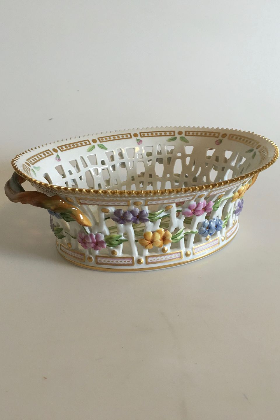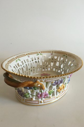 Flora Danica Gennemhullet Oval Frugtskål med Hanke No 20/3536. 24 x 19 x 8 cm.