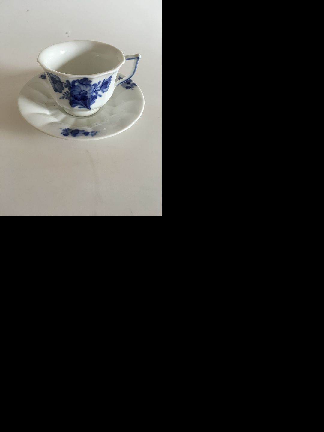 Royal Copenhagen Blue Flower Angular Large Cup with Saucer No 8501. Cup measures 10.5 x 8 cm (4 9/64" x 3 5/32") Saucer measures 17.5 cm dia (6 57/64")