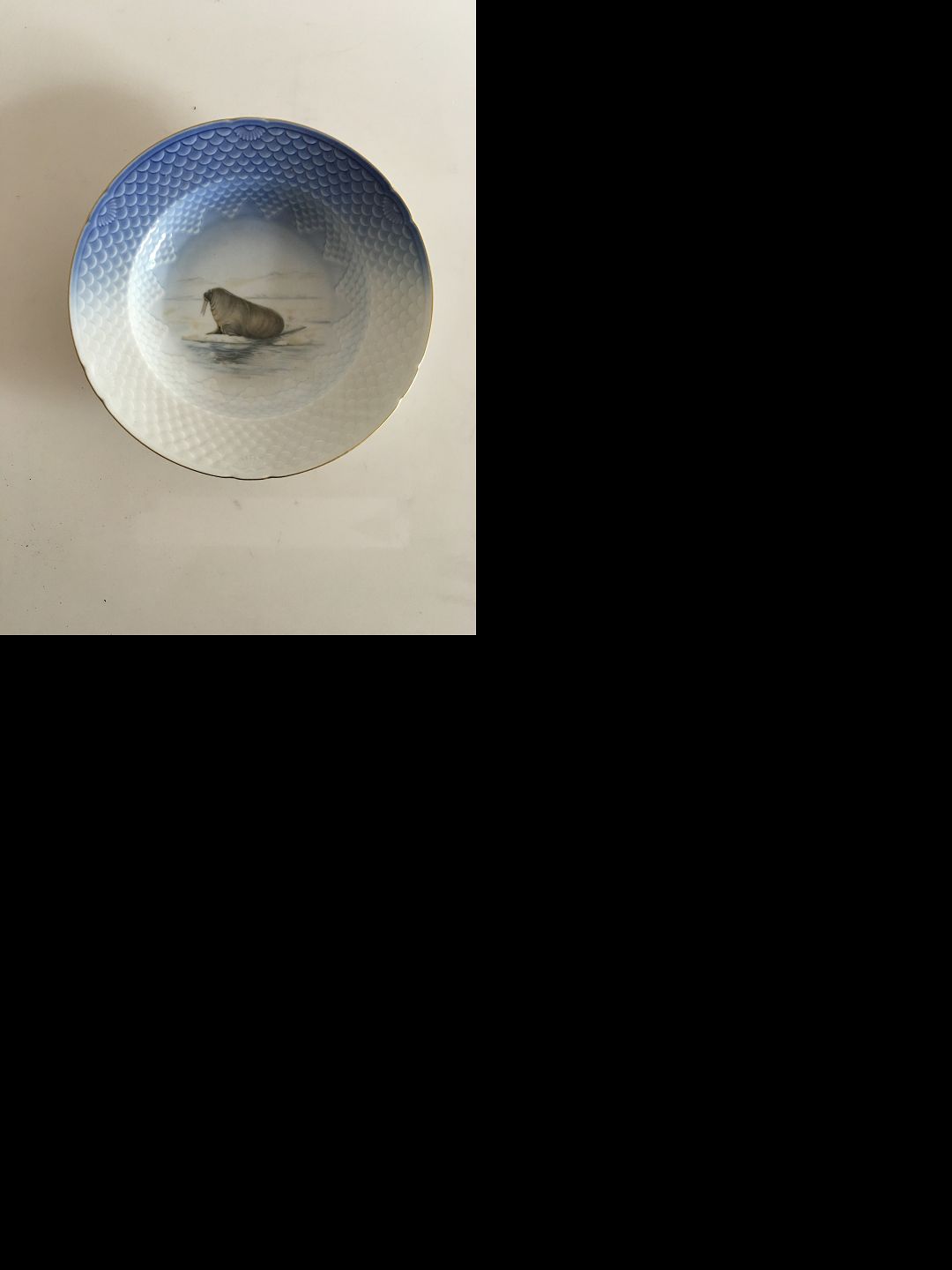 Bing & Grøndahl Måge med Guld Dyb Tallerken No 323 med Grønlands Motiv. Hvalros. 21.5 cm