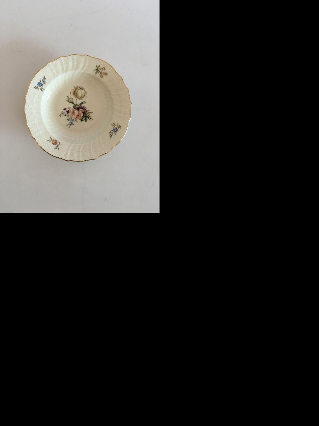 Royal Copenhagen Frijsenborg Lille Dyb Tallerken No 1619. 14.5 cm. Cremefarvet stel med blomstermotiver og guld opkaldt efter godset Frijsenborg.