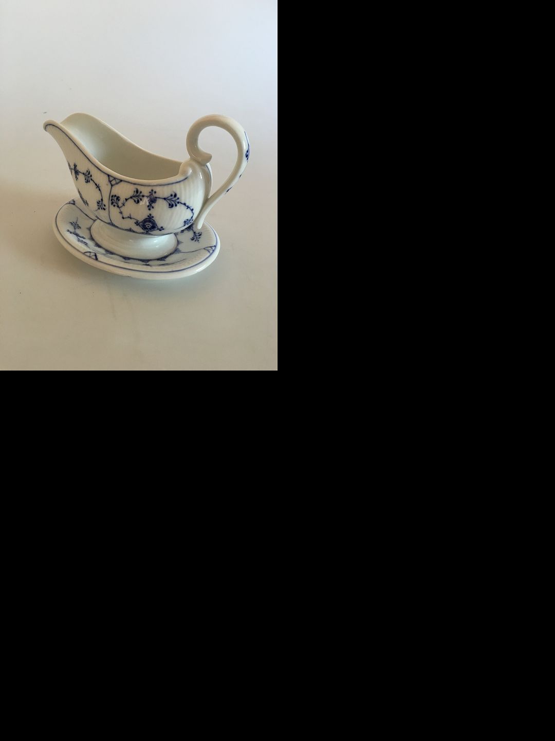 Royal Copenhagen Musselmalet Riflet Saucekande med Underskål No 200. 20 x 14 cm