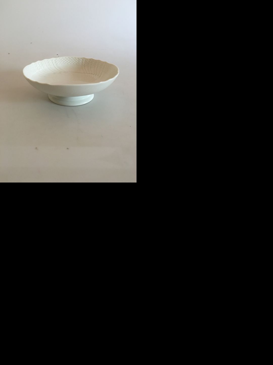 Royal Copenhagen Josephine White Curved Cake Bowl on Short Foot. 6 x 18 cm. The bowl has a little small brown dot, look at picture.