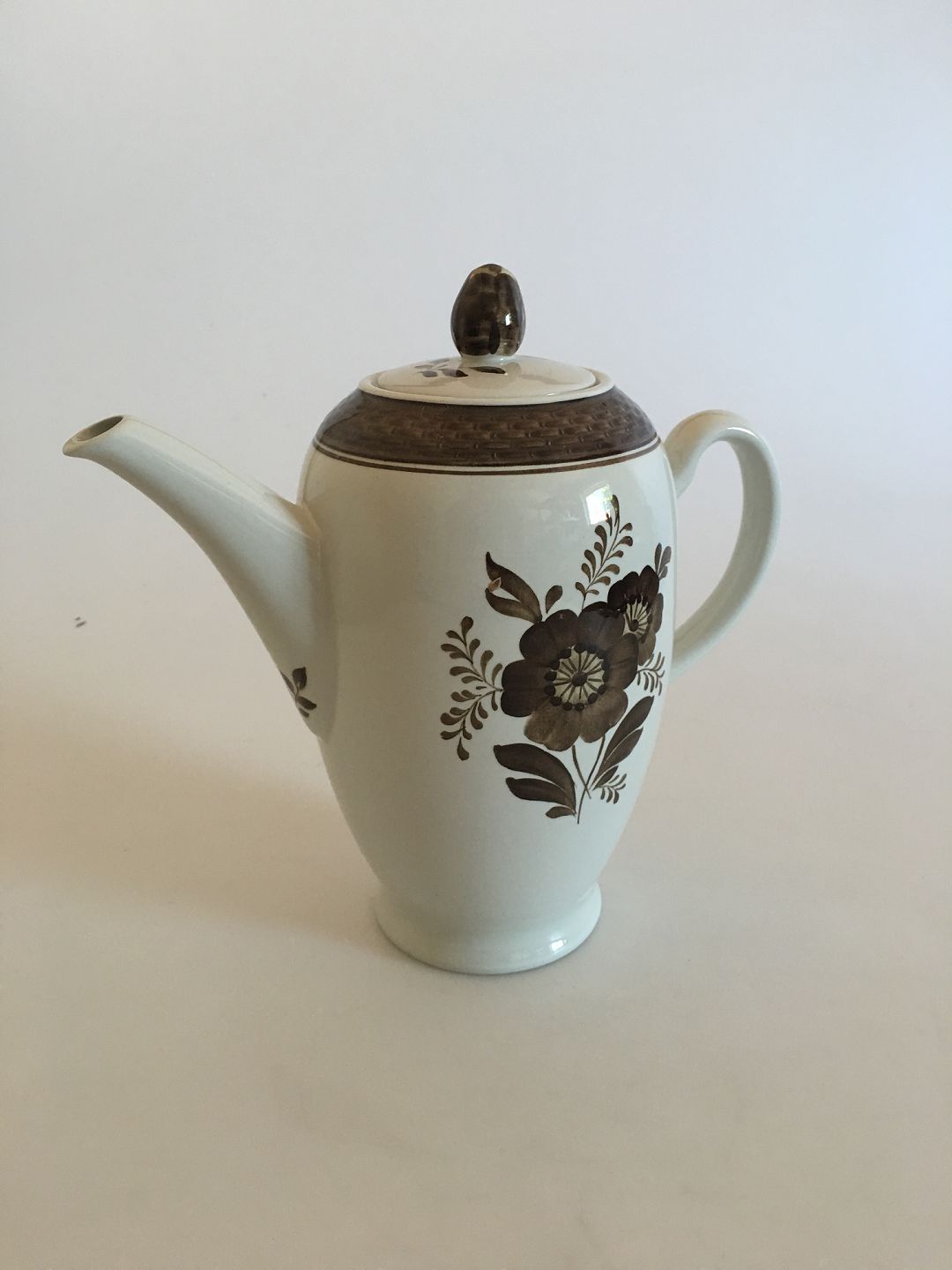 Royal Copenhagen Brown Tranquebar Coffee Pot No 1105. 18.5 cm tall. In perfect condition.