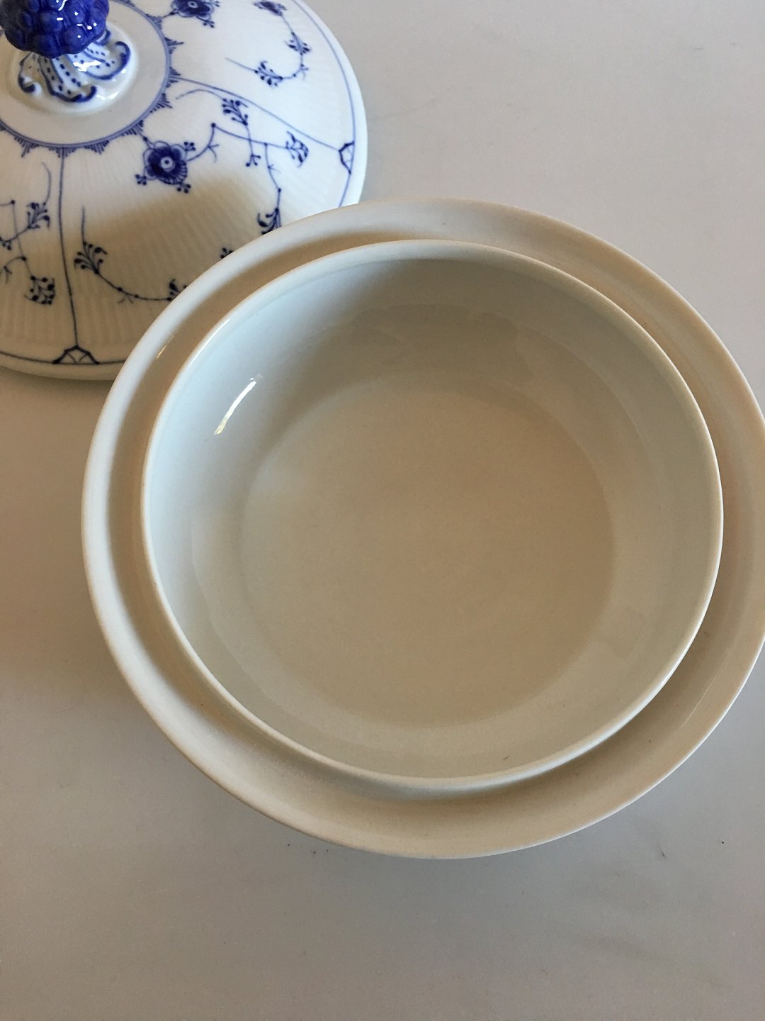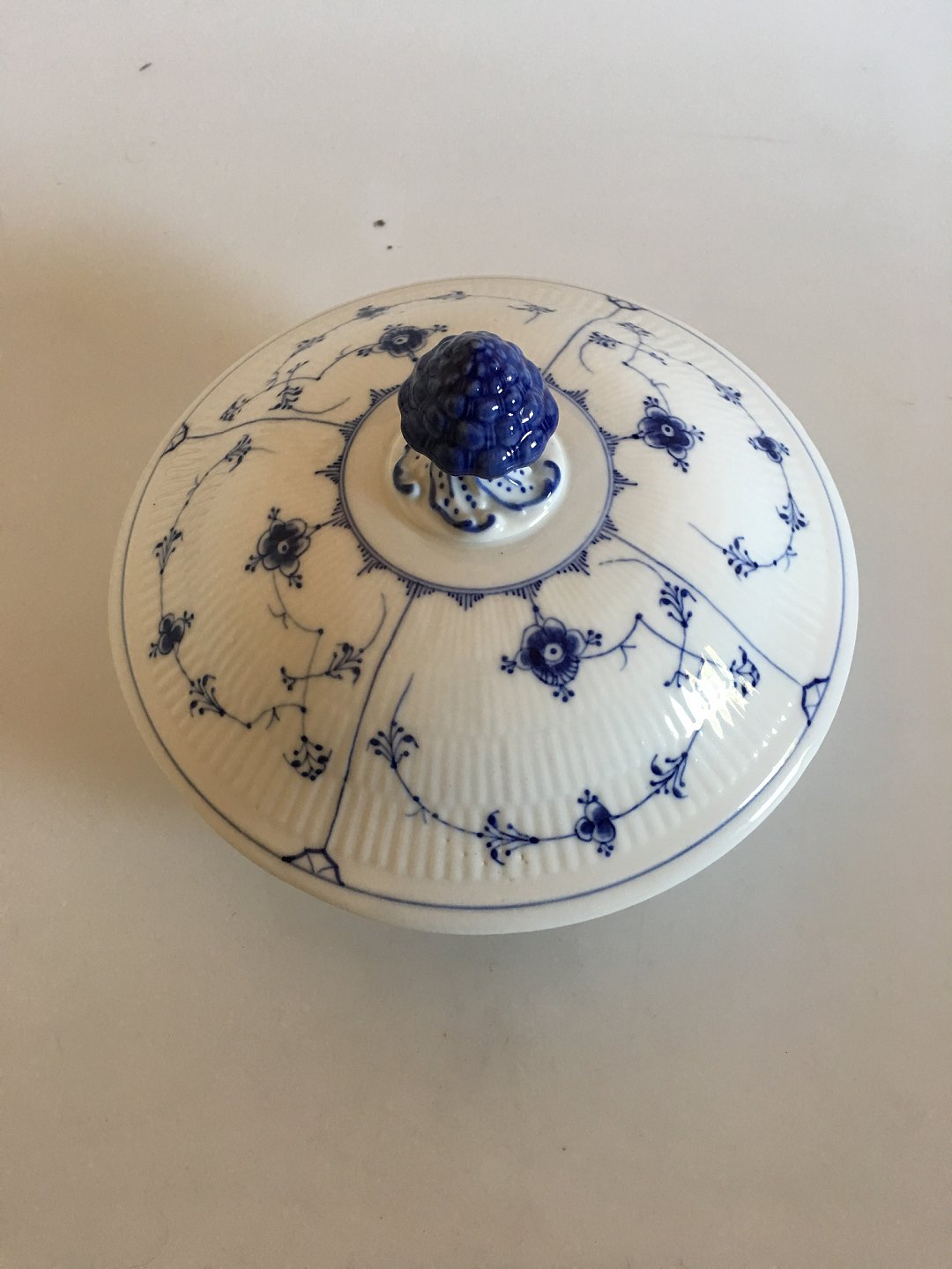 Bing & Grøndahl Musselmalet Riflet Lågterrin / Ragoutfad. 23 cm diameter. I Perfekt stand.