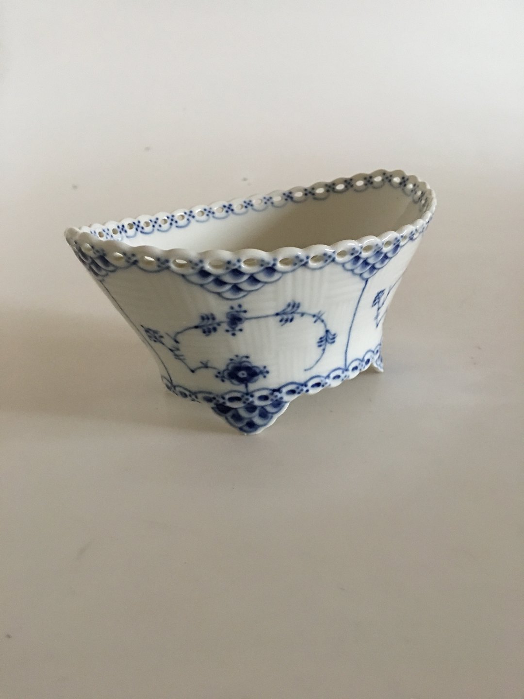 Royal Copenhagen Blue Fluted Full Laced Oval Bowl No 1177. 15 x 10 cm dia (5 29/32" x 3 15/16"). 7.5 cm H (2 61/64"). 3rd Quality.