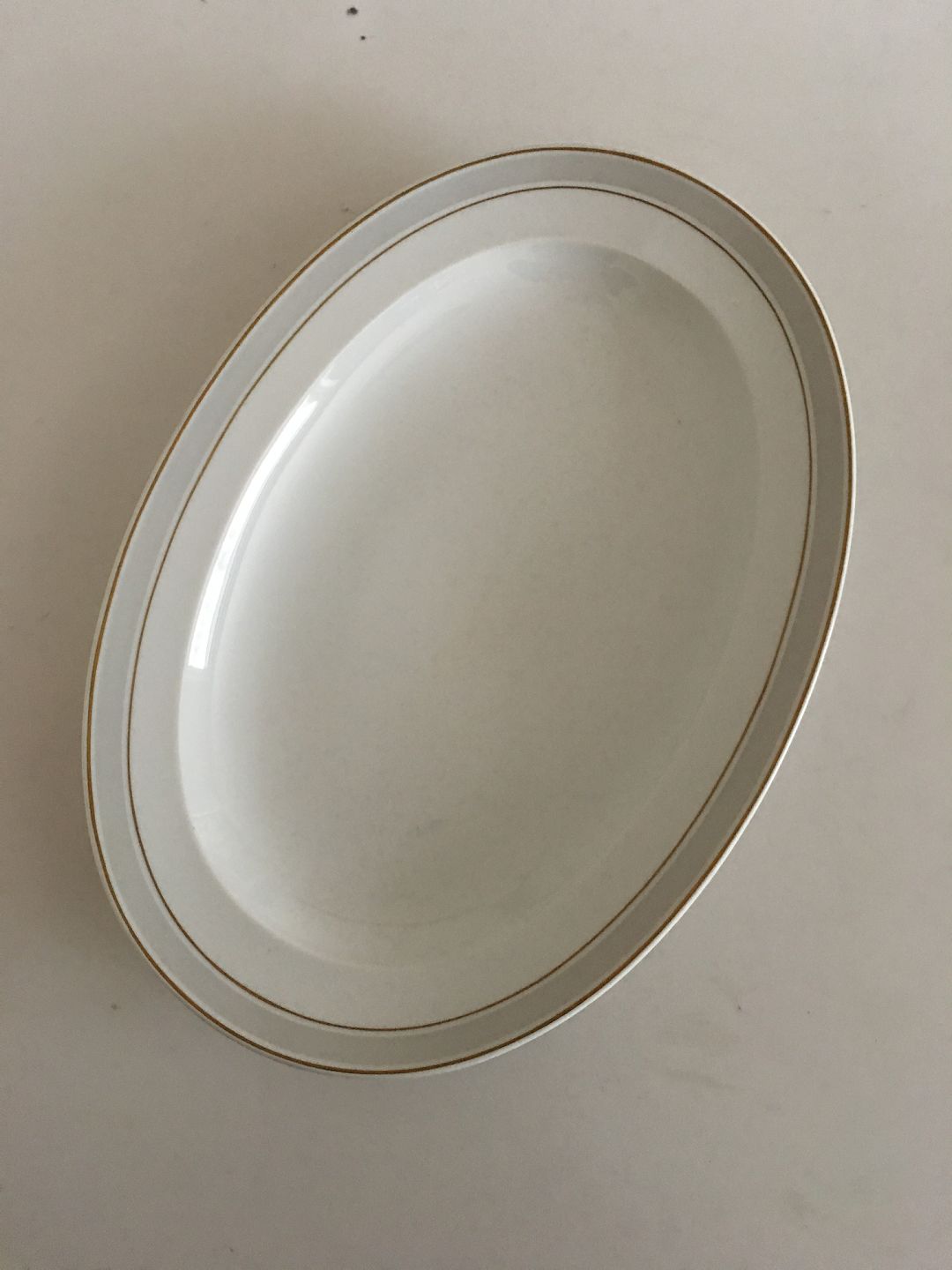 Bing & Grøndahl Tiber Ovalt Serveringsfad No 15. 40.5 cm. Hvid med Lysegrå Bord og Guldkant. 2. Sortering, I fin stand.