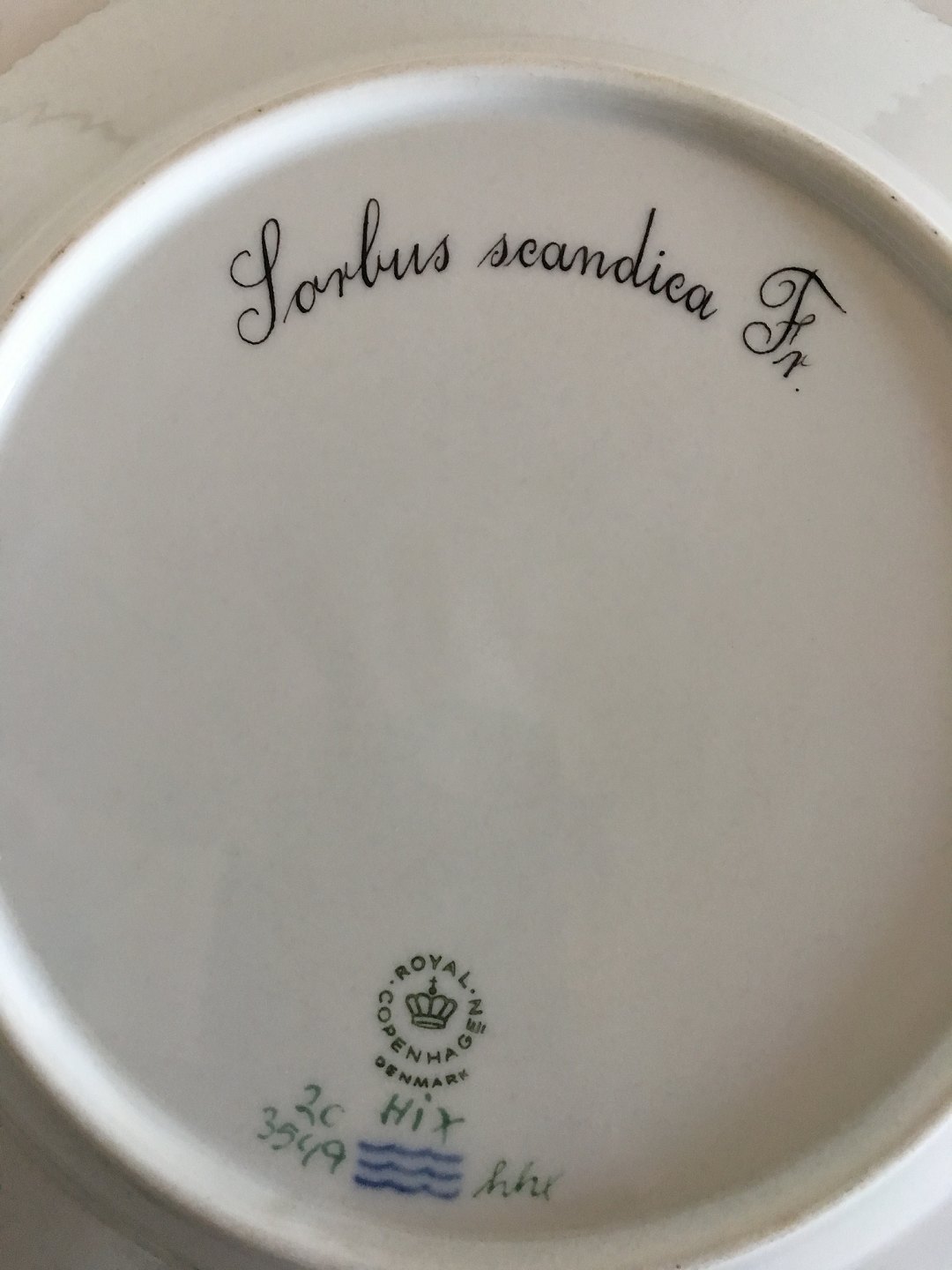 Royal Copenhagen Flora Danica Spisetallerken No 3549. 25.5 cm Ø. 1. Sortering. I perfekt stand. Latinsk Navn: Sorbus Scandica Fr.