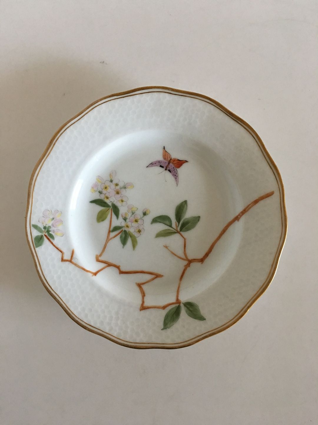 Royal Copenhagen Tallerken No 166/2031 Guldkant med Håndmalet Blomst og Sommerfugl. 21 cm Ø. I pæn hel stand, uden ridser og kun en smule slid på guldet.