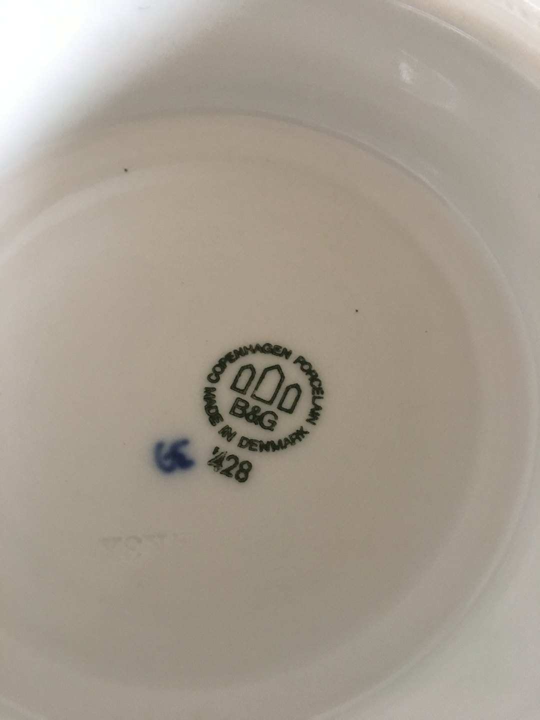 Bing & Grøndahl Blåmalet Musselmalet Kageskål på Lav Fod No 428. 7 cm H. 20 cm Ø. I perfekt stand.