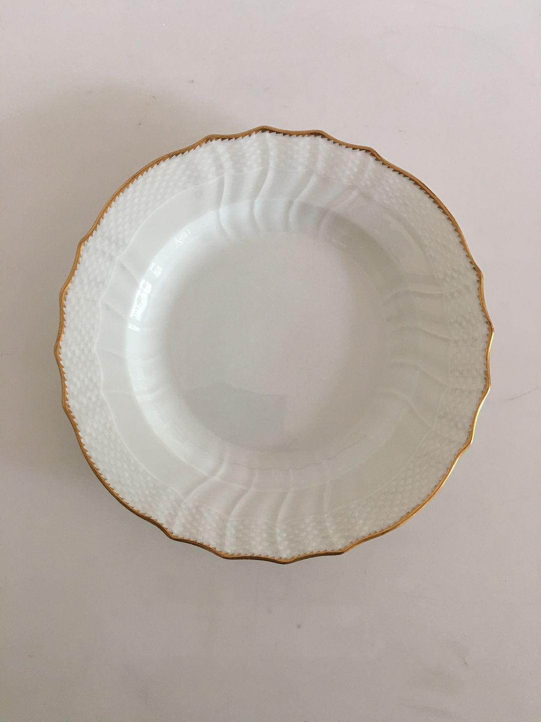 Royal Copenhagen Hvid Svejfet med Takket Guldkant Spisetallerken No 387/1621. 25 cm dia. I fin stand.